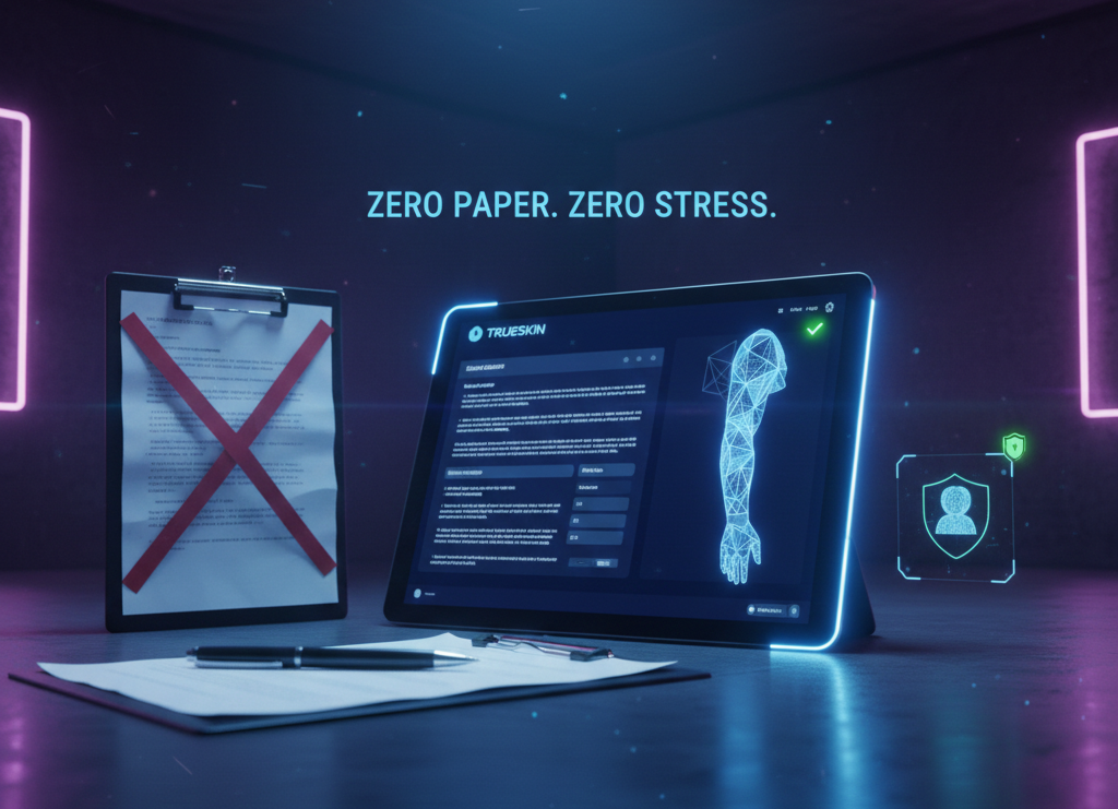 Go digital with TrueSkin's encrypted consent forms. Legally binding, secure, and instantly attached to your client's profile.